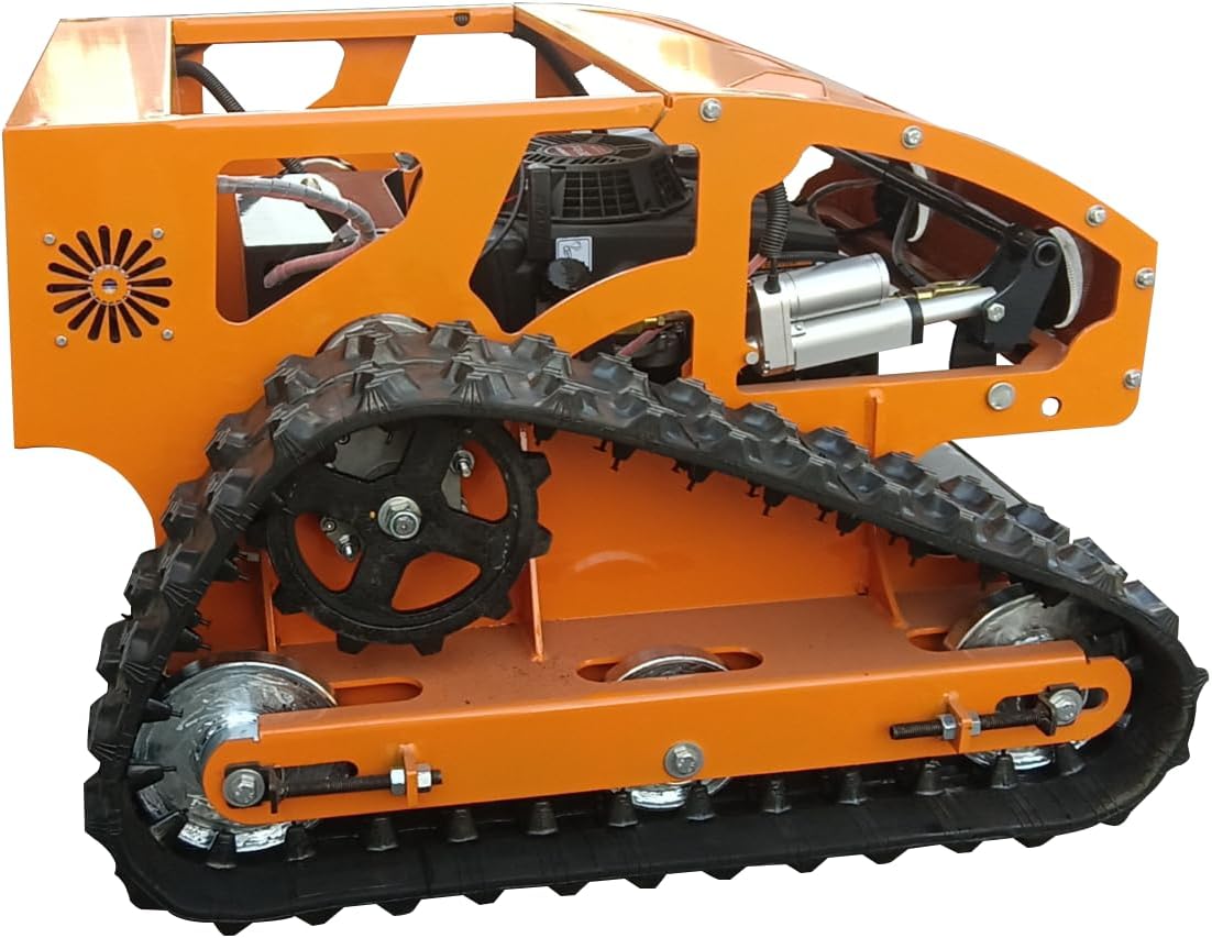 - 【45° slope for Tracked】:The 45-degree tilt capability allows the mower to operate efficiently on steep slopes, ensuring better coverage of hilly or uneven terrain. Tracks provide greater surface contact with the ground, and at a 45° incline, they offer better grip and balance compared to wheels, reducing the risk of slipping or tipping over.