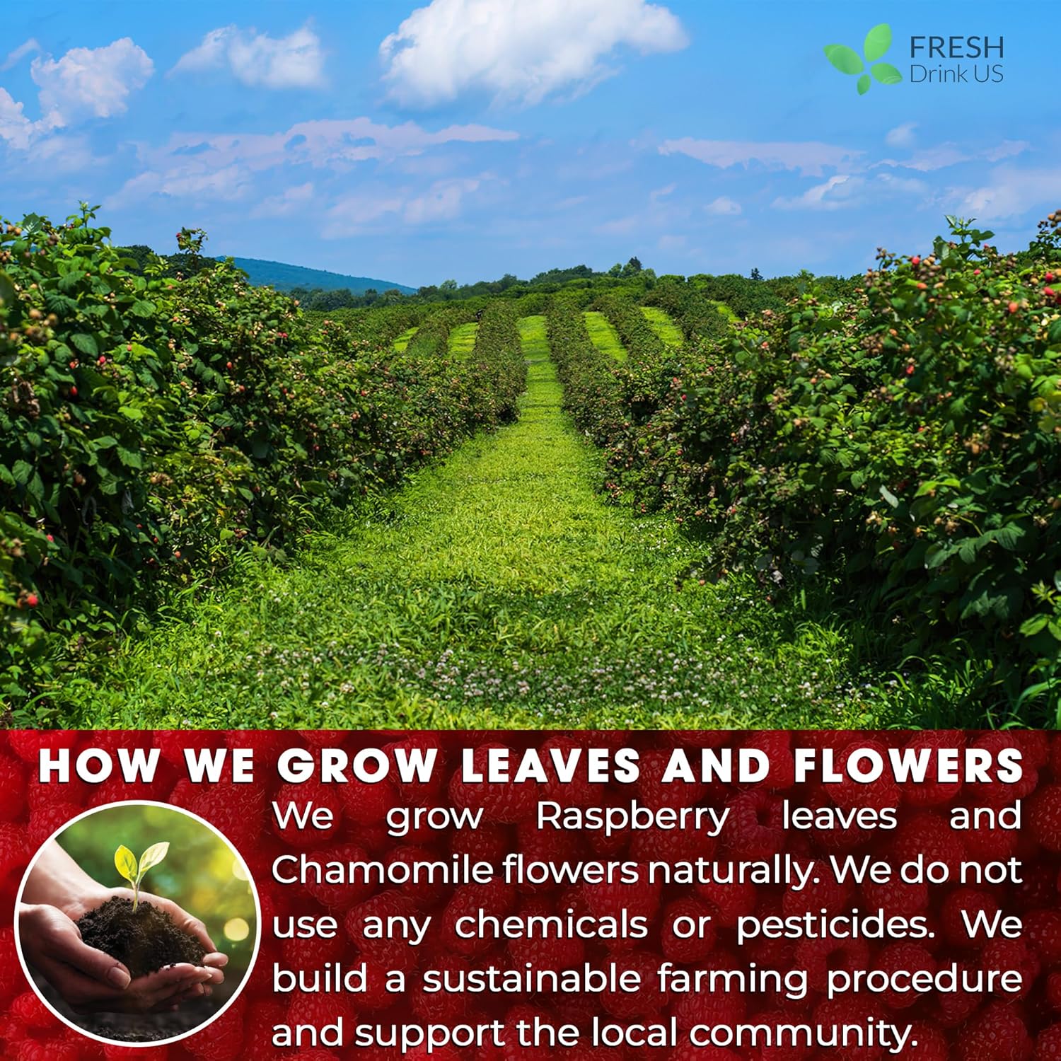 FreshDrinkUS, Premium Raspberry Leaf Tea with Chamomile – 135 Tea Bags | Naturally Caffeine-Free Herbal Blend | Soothing Floral Flavor | Premium Loose Herbal Tea in Natural Material Tea Bags