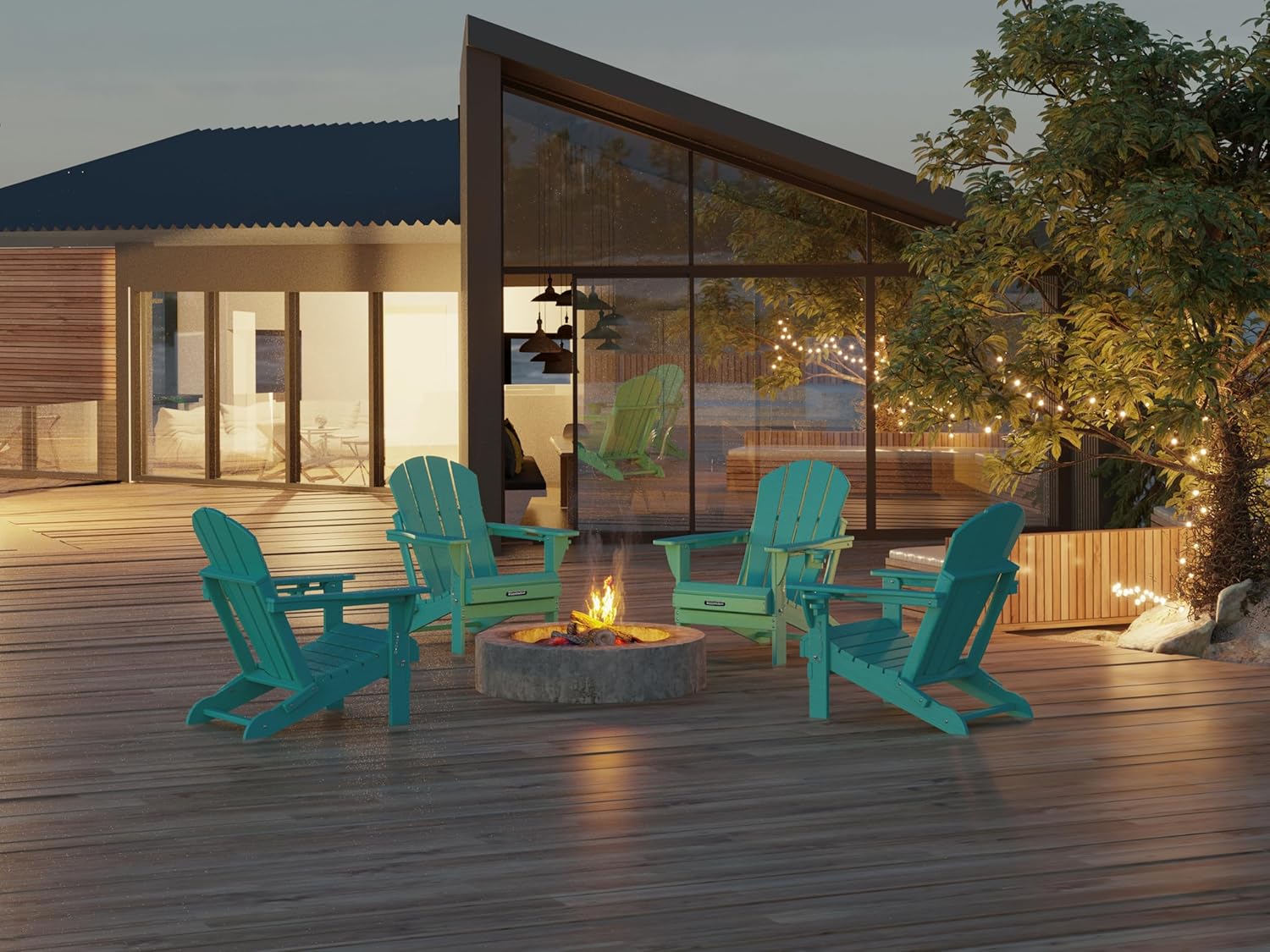 MUCHENGHY Folding Adirondack Chairs and Table Set, Outdoor Chair, Adirondack Chair Plastic, Fire Pit Chair, Weather Resistant with Cup Holder for Deck, Backyard, Garden(Lake Blue, 3-Piece)