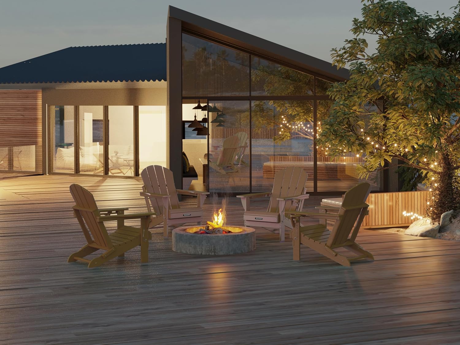 MUCHENGHY Folding Adirondack Chairs and Table Set, Outdoor Chair, Adirondack Chair Plastic, Fire Pit Chair, Weather Resistant with Cup Holder for Deck, Backyard, Garden(Teak, 3-Piece)