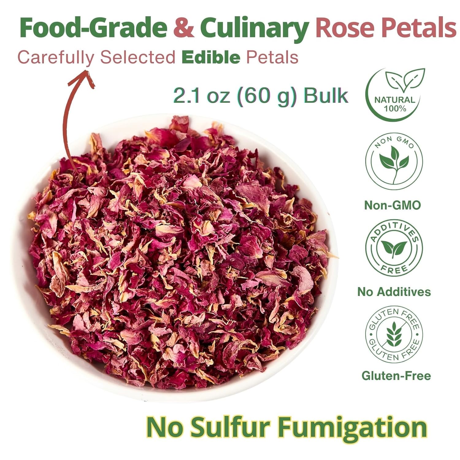 - 【Food-Grade & Edible】Premium dried rose petals edible—carefully selected and naturally dried. No additives, no artificial colors, caffeine-free, vegan. Perfect food grade rose petals for everyday kitchen and craft use
