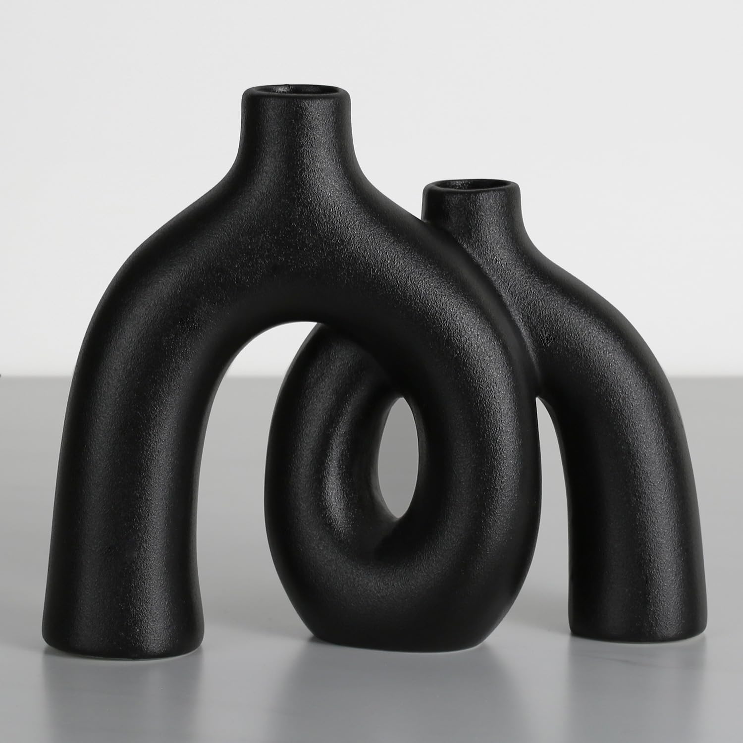 - SIZE & SET DETAILS Includes one black vase: Conjoined Size 10” × Heights 8.5" & 6.9". fits most stems. Boho-chic proportions ideal for shelves or tabletops.