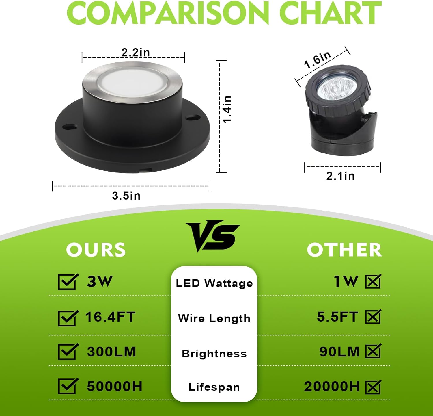 - 【Bright Pond Lights】- Professional quality submersible 3W LED lights are made of plastic and stainless steel housing and are equipped with superior LED chips that provide 300 lumens, equivalent to a 40W halogen bulb and saving up to 80% of power. 3000K soft warm white light, illuminates your pond, fountain, waterfall, or traditional garden landscape with a beautiful and warm glow.