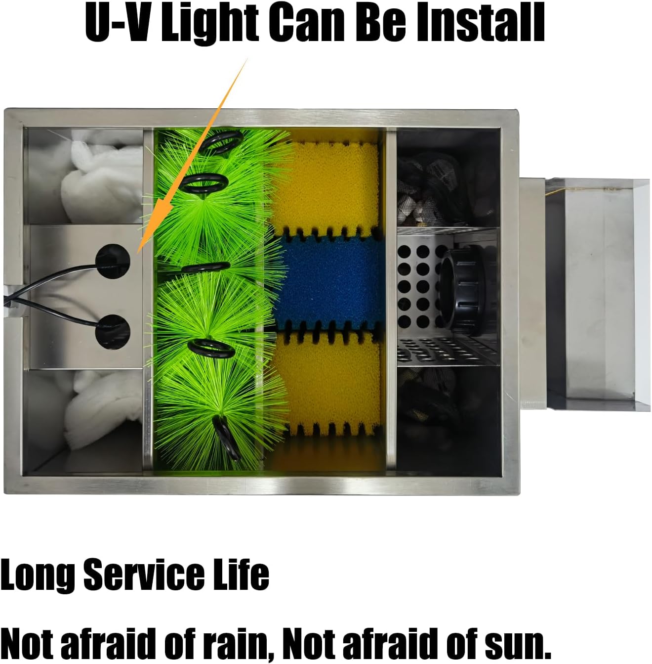 Carefree Fish Koi Pond Filter Box Stainless Steel Garden Water Waterfall Filtration Outdoor Horse Equipment Pool Filter System with Water Pump(Patent No.:US D1067273S)