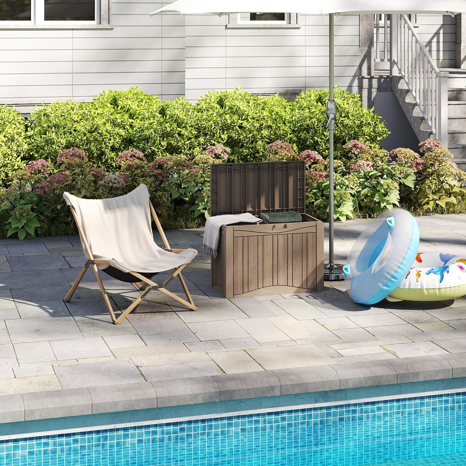 - Large Capacity for Versatile Storage:With a 28-gallon capacity and a 150-pound weight limit, it provides ample storage for outdoor cushions, garden tools, or camping gear and can also be used as a seating option or a table.