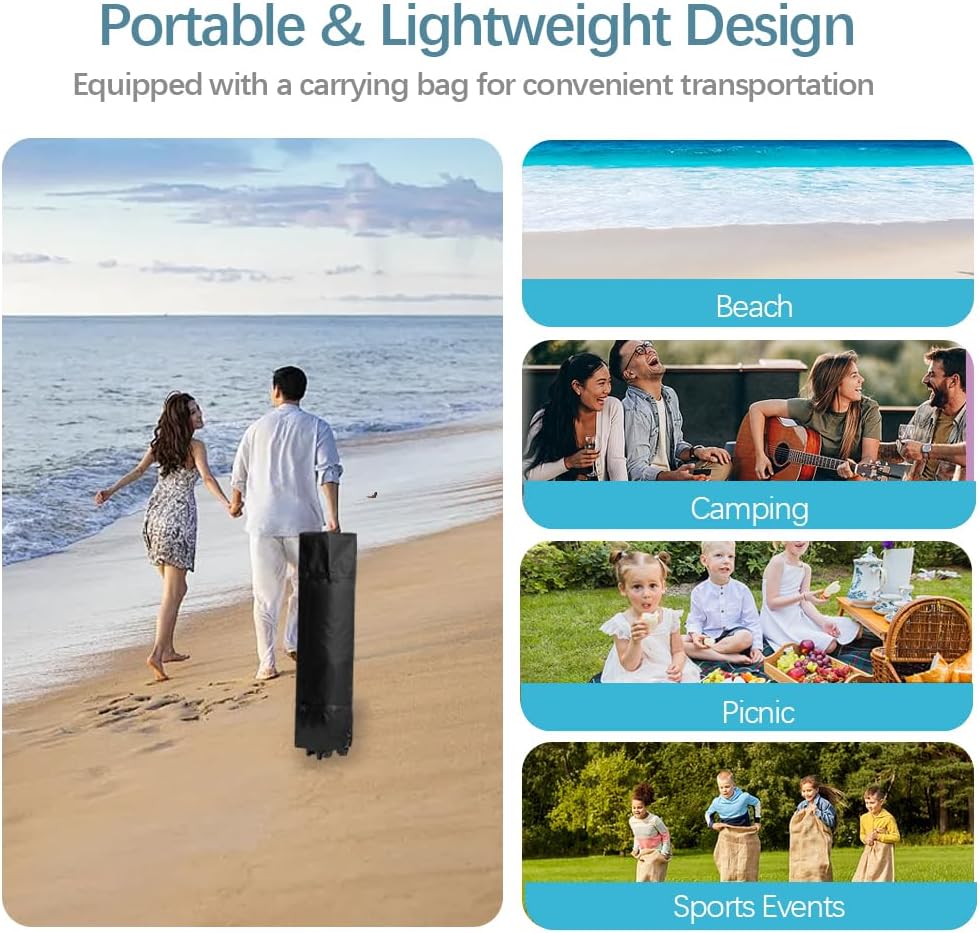 - 【All-In-One Wheeled Carry Bag】Pack once, roll anywhere. Comes with 4 sandbags, 8 stakes, and 4 ropes—everything stored neatly in a rugged wheeled bag with reinforced corners and 360° handles. Perfect for one-handed transport to campsites, fairs, or tailgate setups.