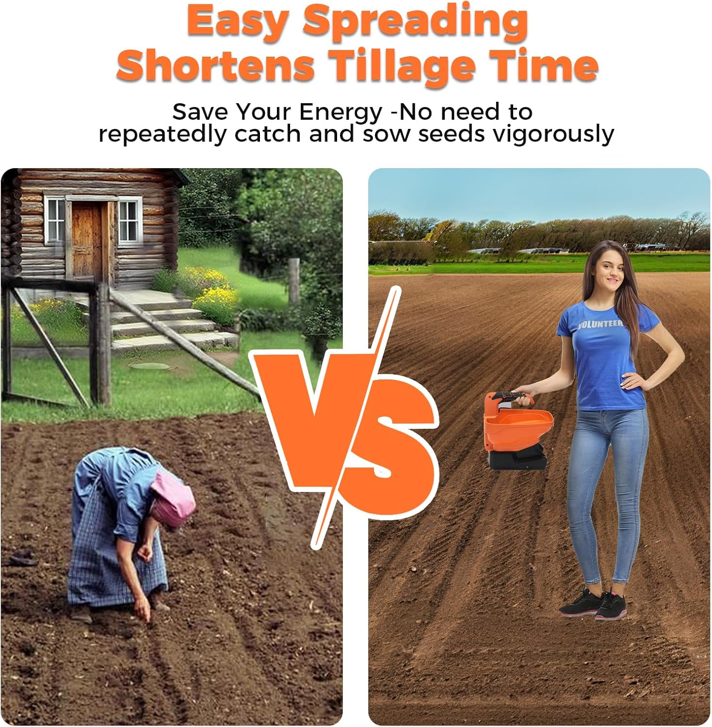 - 【Customize Your Seeding Needs】With 8 seed settings and 6 speed settings, accurately match the seed type, which can save time, effort and no wasting seeds. our fertilizer spreader can meet your diverse seeding needs!