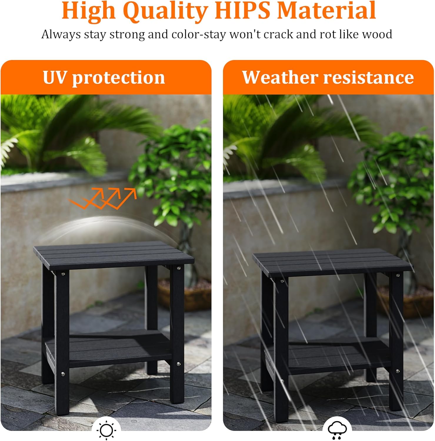 Weather Resistant Outdoor Side Tables Set of 2, Adirondack HDPE Small Outdoor Table, 2-Tier Small Patio Tables for Outside or Indoor, Black