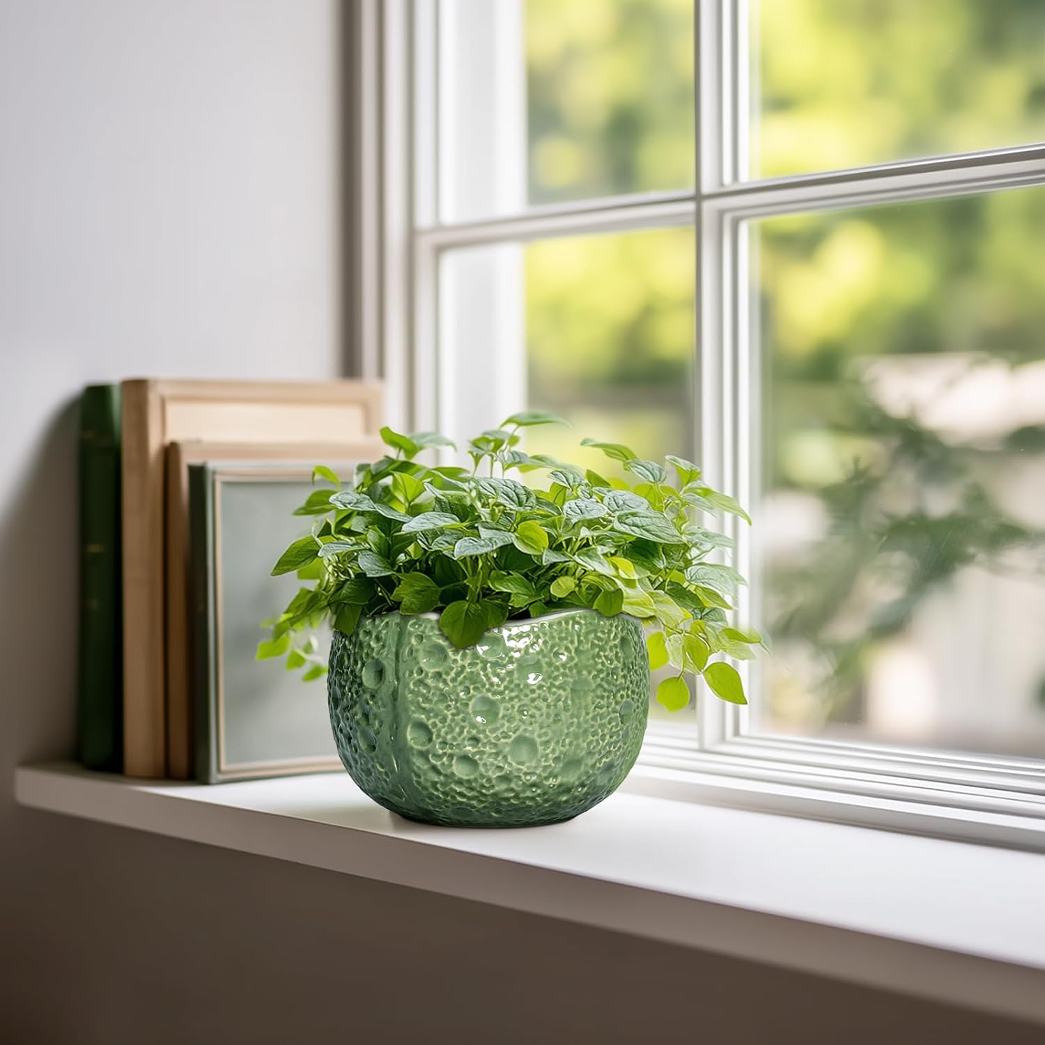 6 Inch Plant Pot - Orchid Pot with Drainage Hole, Ceramic Planter for Indoor Outdoor, Decorative Plant Pots, Modern Round Unique Flower Pots, Living Room Decor, Gifts for Women Men, Green