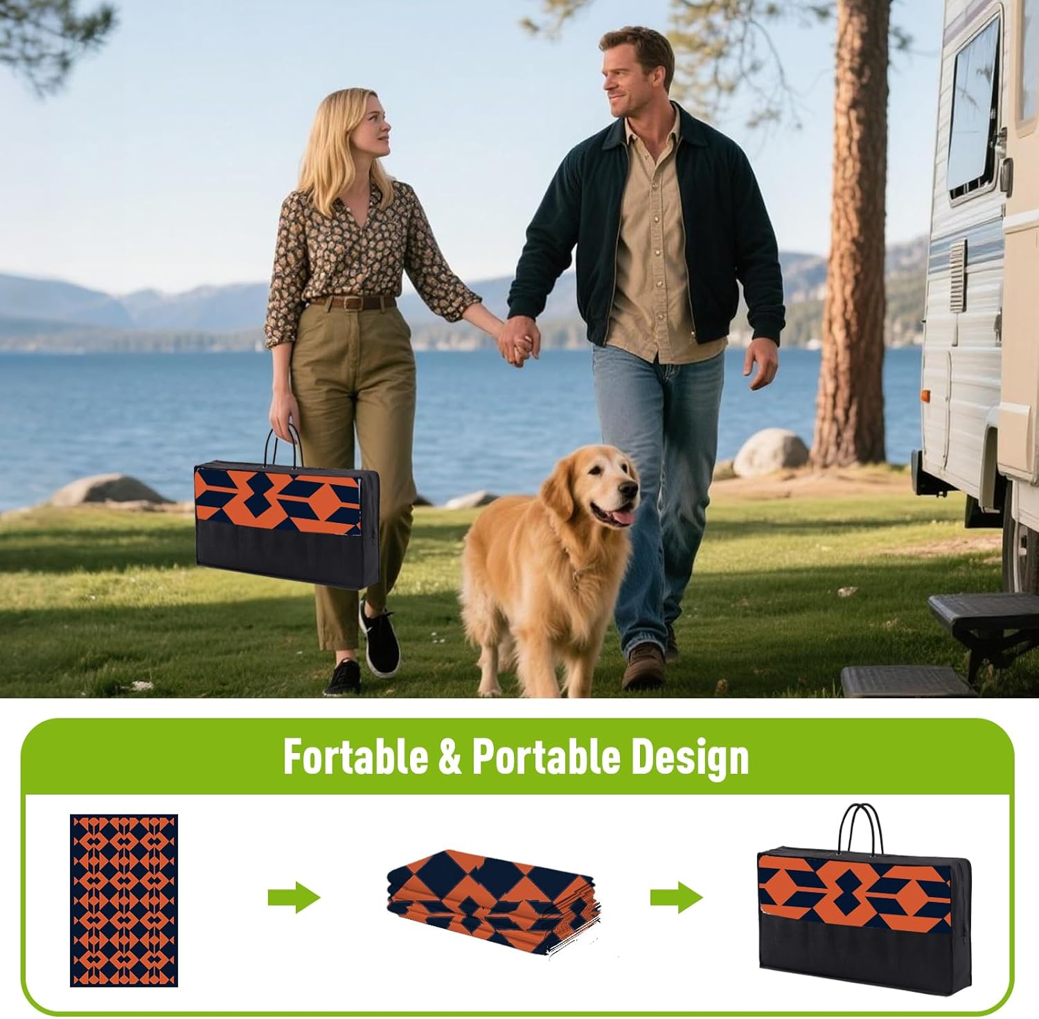 - Portable & Durable: This outdoor plastic rug with seams can be rolled or folded into a compact size and comes with a carrying bag for easy portability. Perfect for outdoor activities, picnics, sunbathing, and RV road trips. The heat-sealed edges prevent wear and tear, withstanding any environment, traffic, or scratches