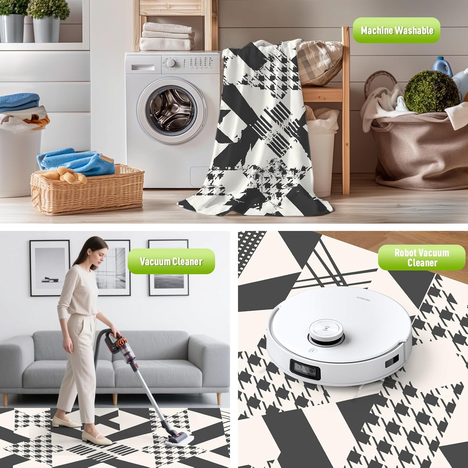 - Stain-Resistant & Easy to Clean: This waterproof, stain-resistant, and quick-drying outdoor rug is made from recycled plastic grass weaving. Dirt, hair, and spills can be easily removed by hosing it down or shaking it off. For deep cleaning, simply wipe it with a damp cloth and mild soapy water, rinse, and let it air dry in minutes