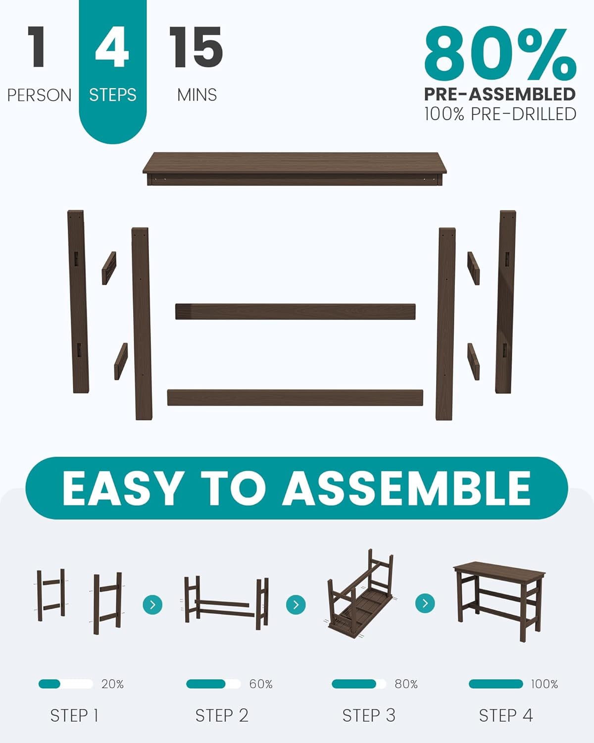 - Effortless Assembly: This bar table is easy to assemble, with 80% of the components pre-assembled and 100% pre-drilled. It comes with clear instructions and all necessary tools, allowing you to complete the assembly in just 4 easy steps. Save time and enjoy a hassle-free setup experience.