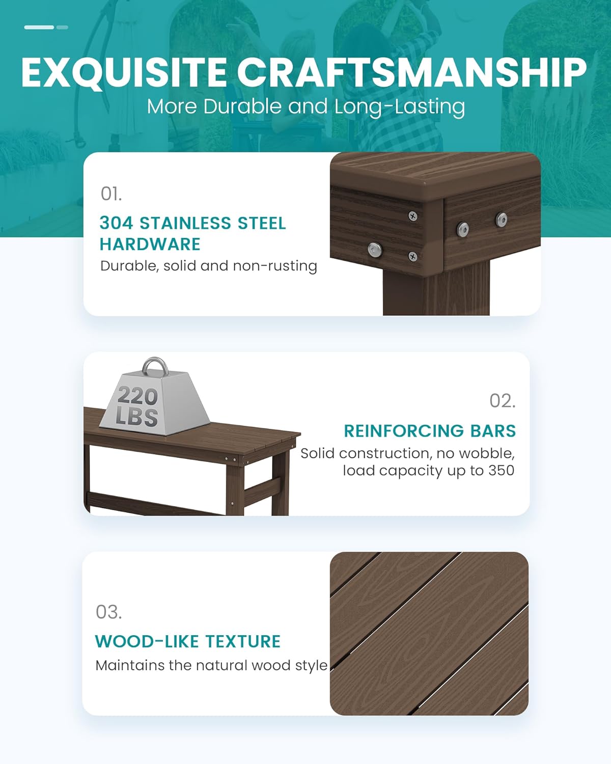 - Sturdy and Durable: Serwall outdoor furniture crafted from recyclable HDPE (High-Density Polyethylene), this material is built to withstand extreme weather conditions, including intense sun, freezing temperatures, strong winds, and heavy rain, all while maintaining its original color.