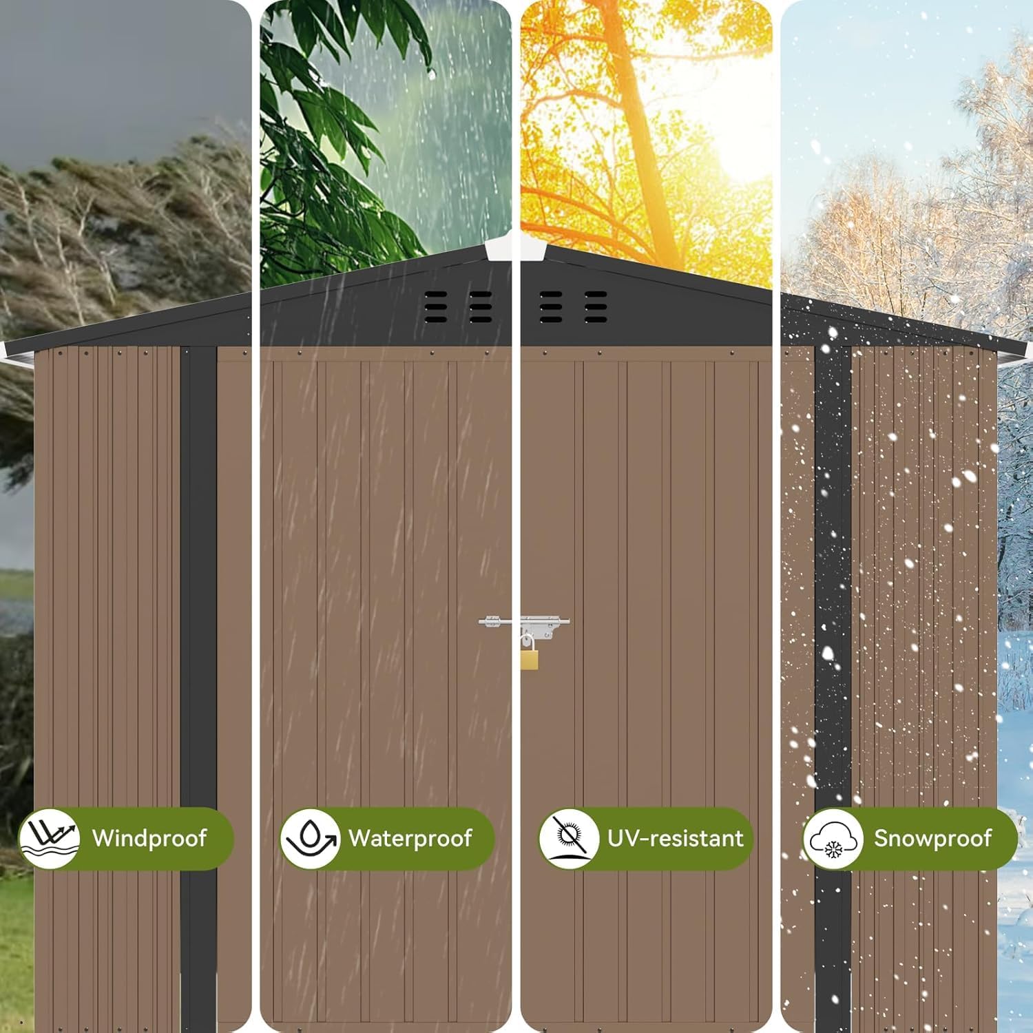 COMHOMA Shed Outdoor Storage Shed Metal,Lockable Doors Tool Sheds with Sloping Roof,Steel Garden Shed with Air Vent for Backyard,Patio,Lawn,Poolside (Brown, 8'*6')
