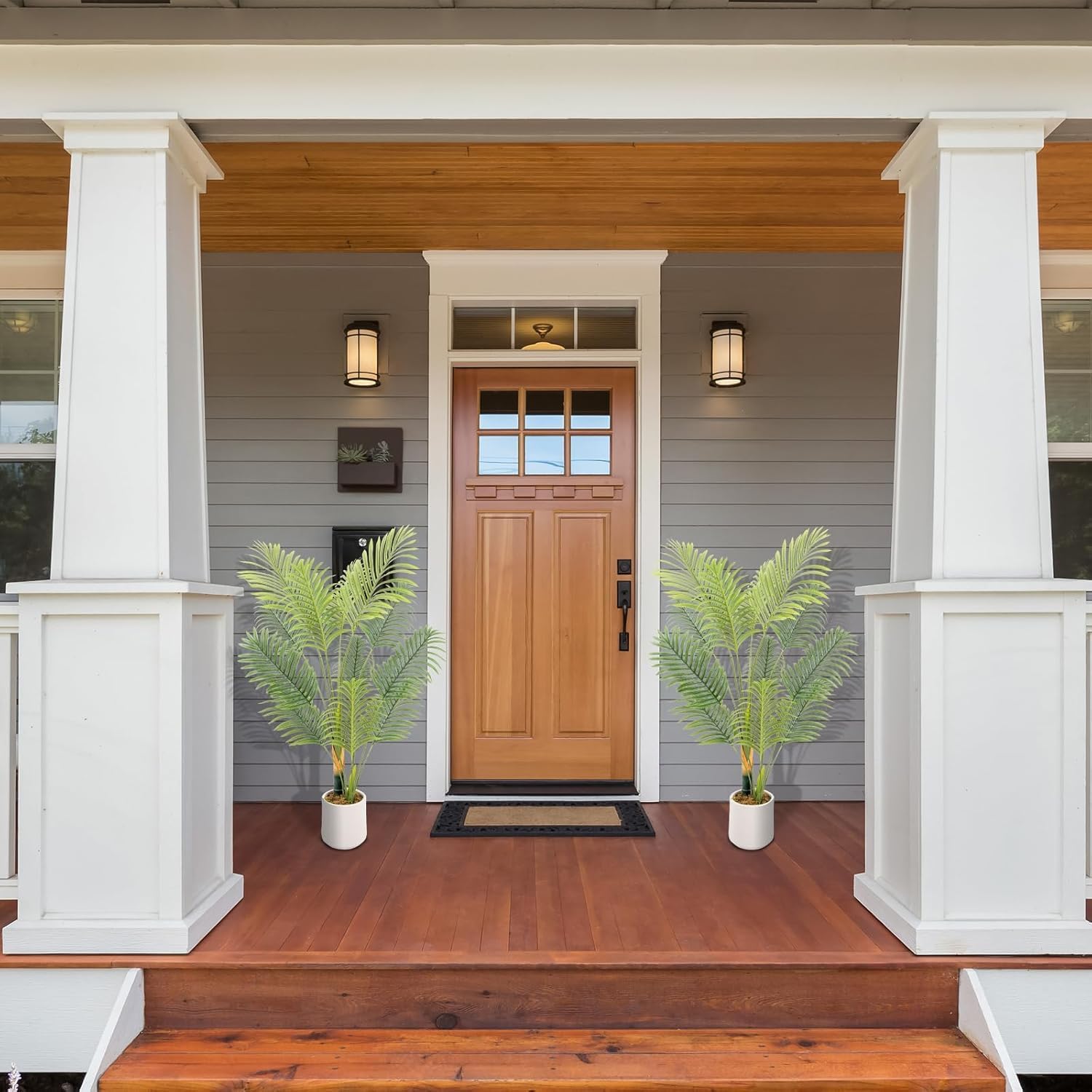 - ๐ฟ Ultra-Realistic & Adjustable Design โ Bend flexible fronds to craft your lush paradise! Our fake palm tree mimics natural texture with silk-green leaves, lifelike trunk grooves. Ideal for front porch decor or outdoor decor, its weather-resistant materials stay vibrant indoors or by the pool.