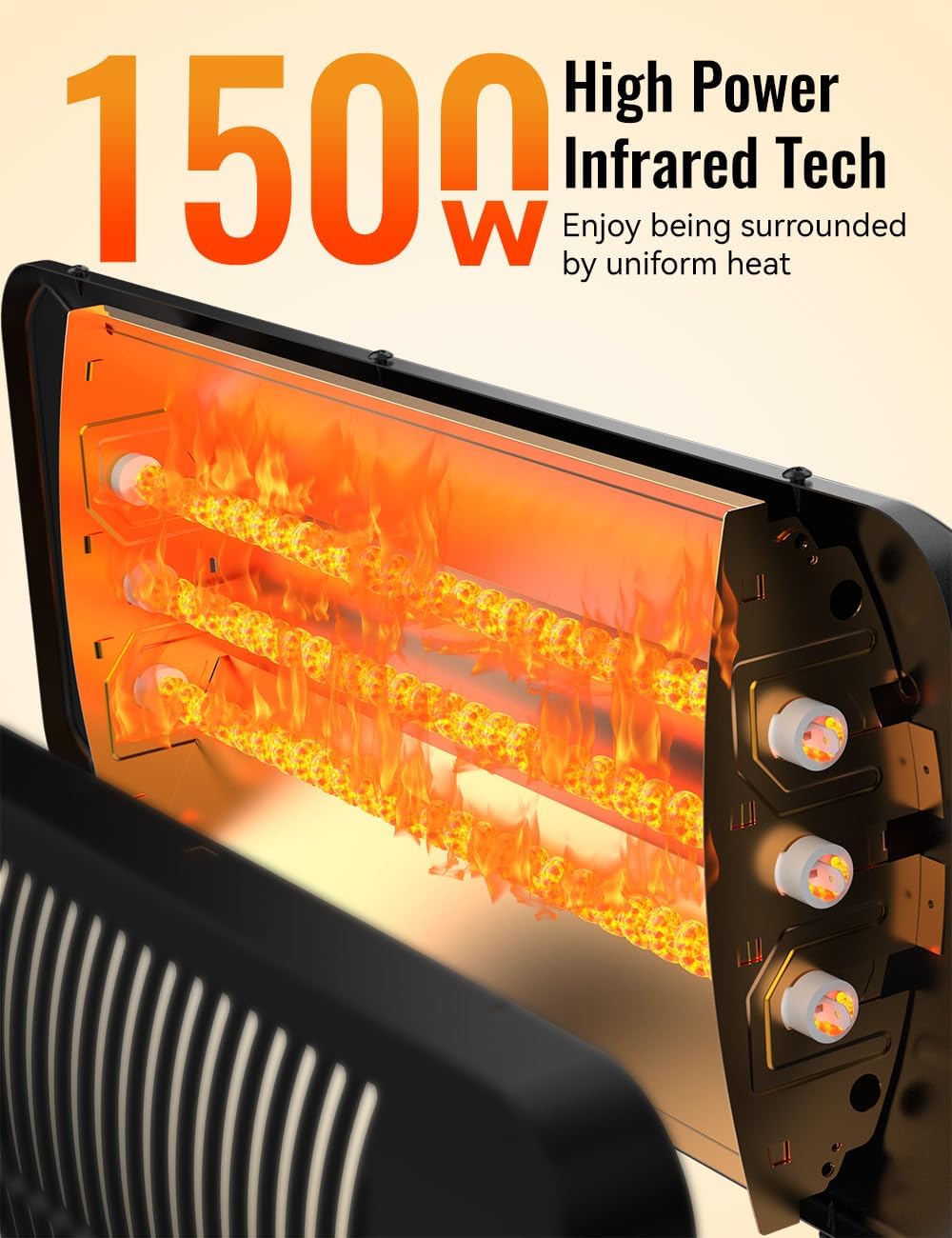 - Special Feature : 1S Fast Heating, 12H Smart Timer, Noise Free, 3 Adjustable Heat Settings, Cleverly Fire Proof Towel Bracket, IP54 Waterproof & Snow proof for Outdoor Use, Dual Control for Ultimate Ease, Safety Protection: Tip-over Protection, UL-listed, Stable Base 1S Fast Heating, 12H Smart Timer, Noise Free, 3 Adjustable Heat Settings, Cleverly Fire Proof Towel Bracket, IP54 Waterproof & Snow proof f⊠See more