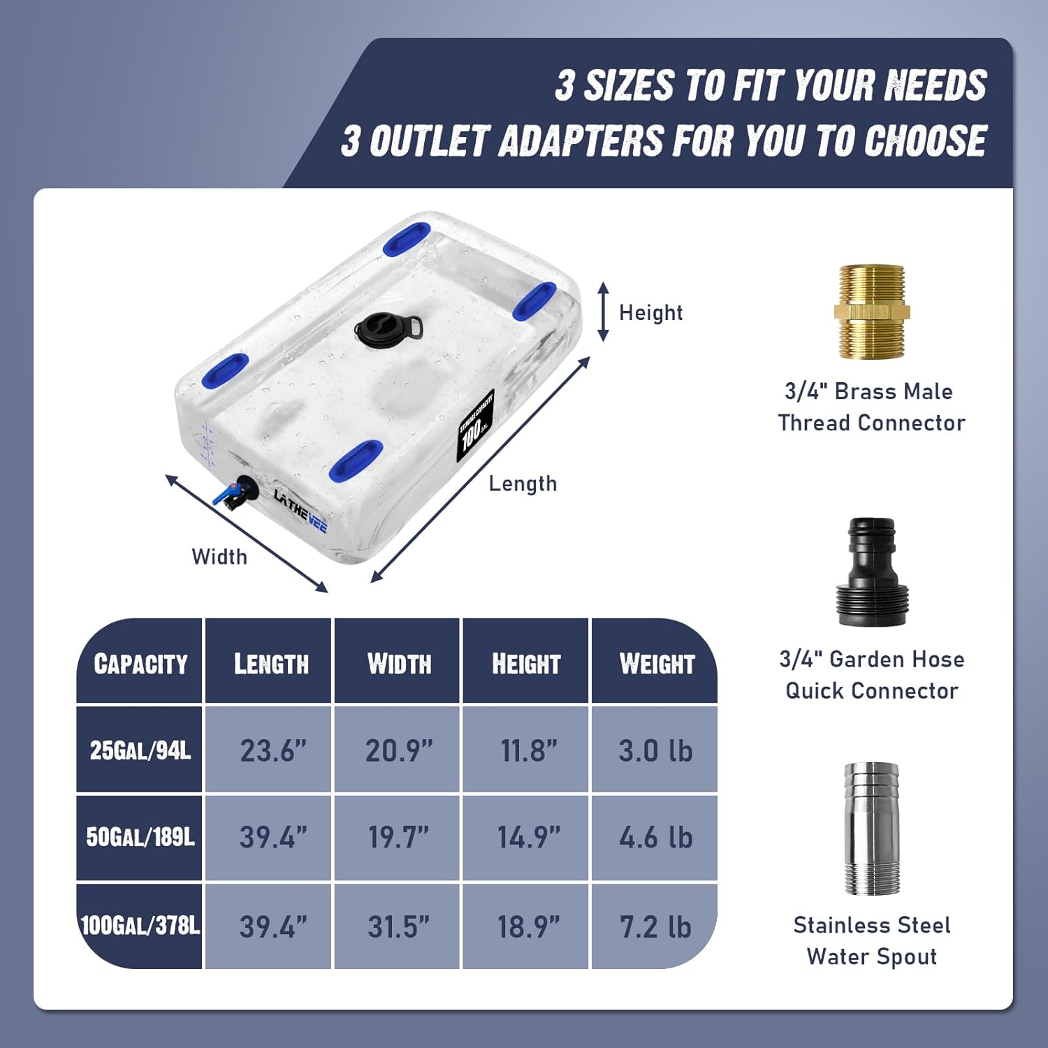 - LARGE CAPACITY WATER BLADDER: The LATHEVEE is a water containment system that holds up to 25 gallons/94L of water to prepare for an emergency. It can assist you in organizing your garden, watering plants, agricultural irrigation, camping, hunting, hiking, for emergency water for outdoor activities or off-grid living.