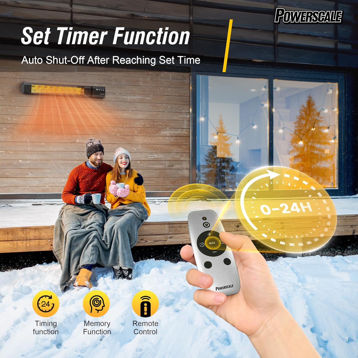 - Electric Patio Heater with Personalized Comfort โ Choose from 4 heat levels and set a 24-hour timer with either the remote control or the built-in touchscreen panel. This infrared space heater works as a heater outdoor for patio, a porch heater for balconies, or an electric garage heater for workshops, giving you flexible warmth whenever and wherever you need it