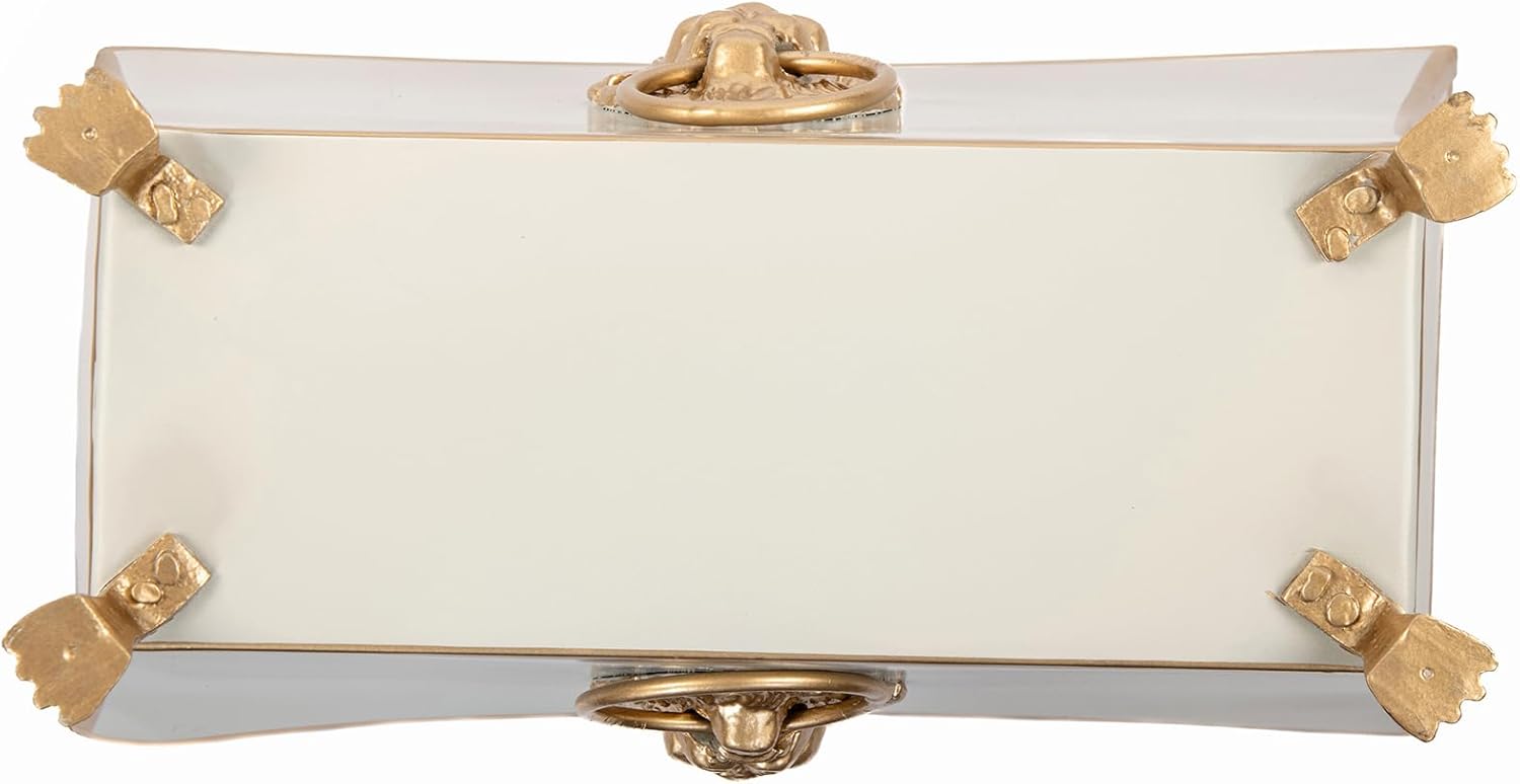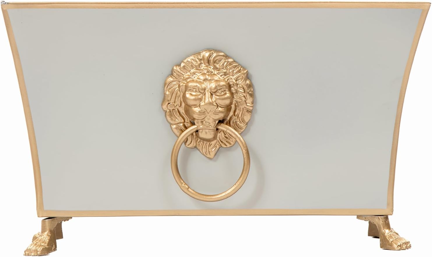 - Hand-Painted Metal Decor with Gold Detailing | This taupe metal decor piece is crafted from hand-painted metal and features decorative claw feet and a gold lion head ringโideal for enhancing planter decor on vanities or bookshelves.