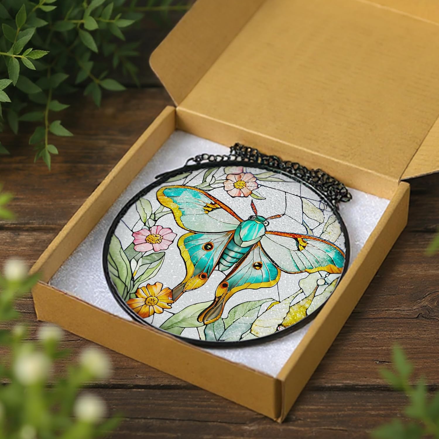 - 🔆Craftsmanship Details: This 8x8-inch stained glass suncatcher, meticulously crafted from premium diamond glass, features vibrant, glossy patterns rendered via high-definition production technology that resist fading—striking a seamless balance between aesthetic allure and lasting durability, making it an exquisite choice for home decor and a creative gift for neighbors.