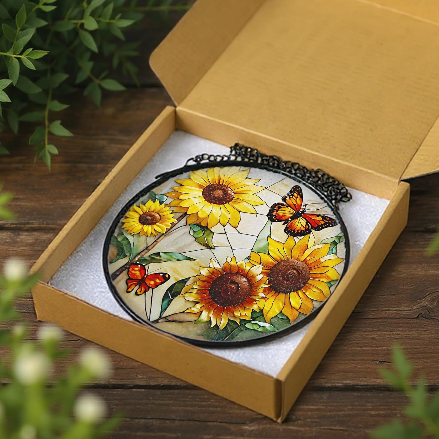 - 🔆Craftsmanship Details: This 8x8-inch stained glass suncatcher, meticulously crafted from premium diamond glass, features vibrant, glossy patterns rendered via high-definition production technology that resist fading—striking a seamless balance between aesthetic allure and lasting durability, making it an exquisite choice for home decor and a creative gift for neighbors.