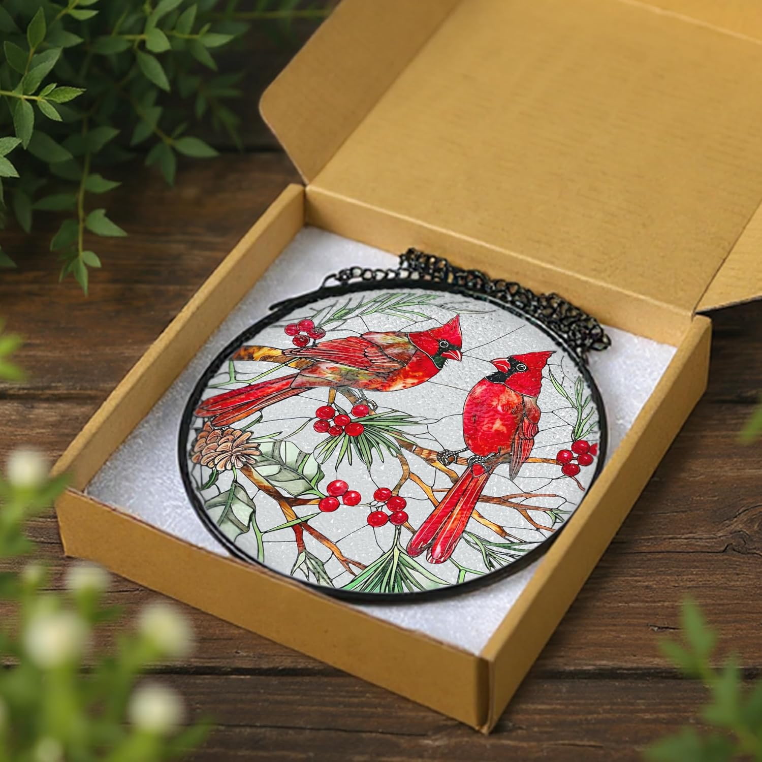 Cardinal Stained Glass Window Hanging, 8 Inch Sun Catchers Indoor Window, Suncatchers for Windows Hanging, Home Decor and Christmas, Festival, Mother's Day, Birthday, Cardinal Gifts for Women, Men