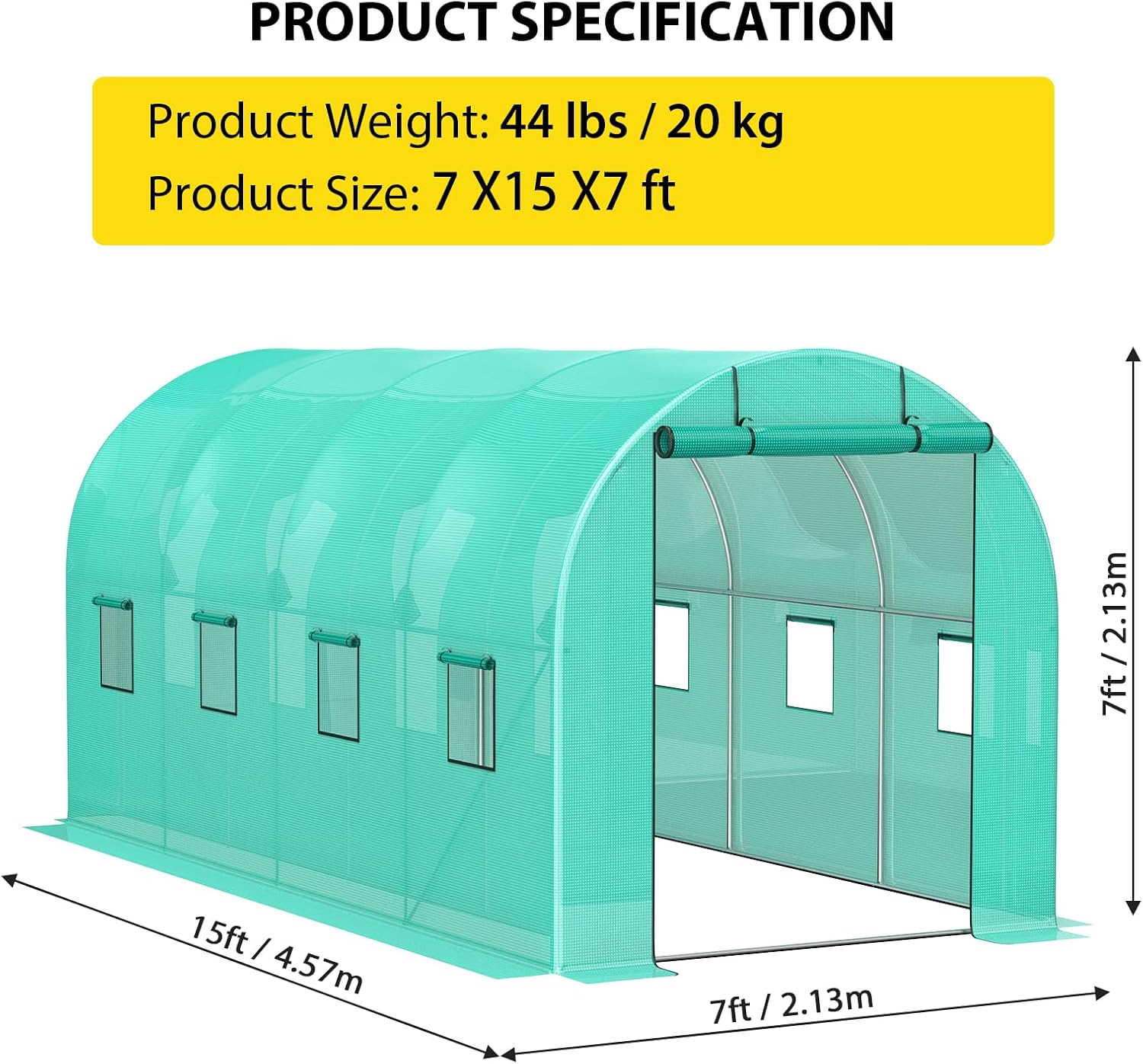- Space-Efficient Growing Area:Measuring 7x15x7FT, this compact tunnel greenhouse provides ample cultivation space while fitting well on balconies, patios, or urban garden settings.The design maintains generous plant area within limited footprints.