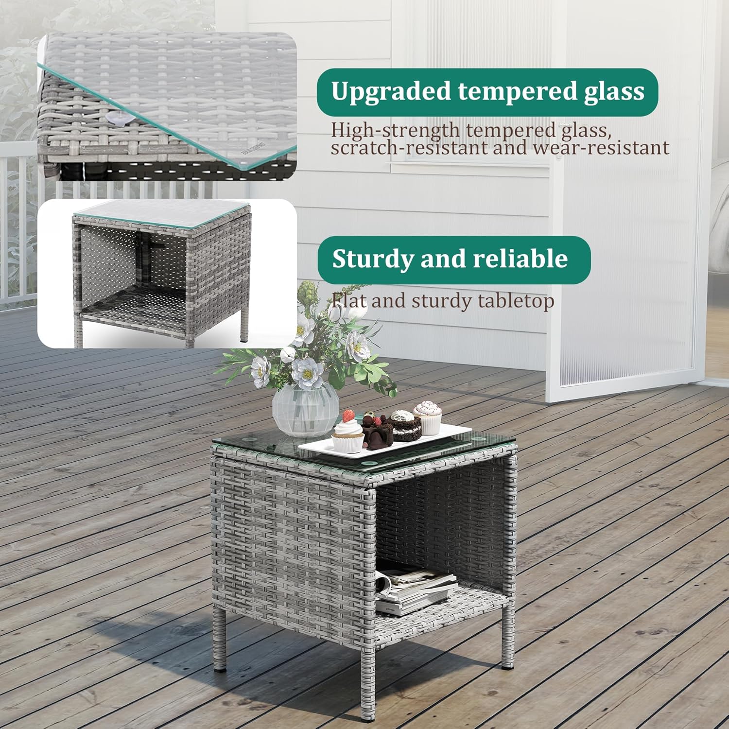 3 Piece Patio Furniture Set - Outdoor Conversation Sets with Coffee Table, Rattan Chair Set for Garden/Poolside, Grey/Navy Blue