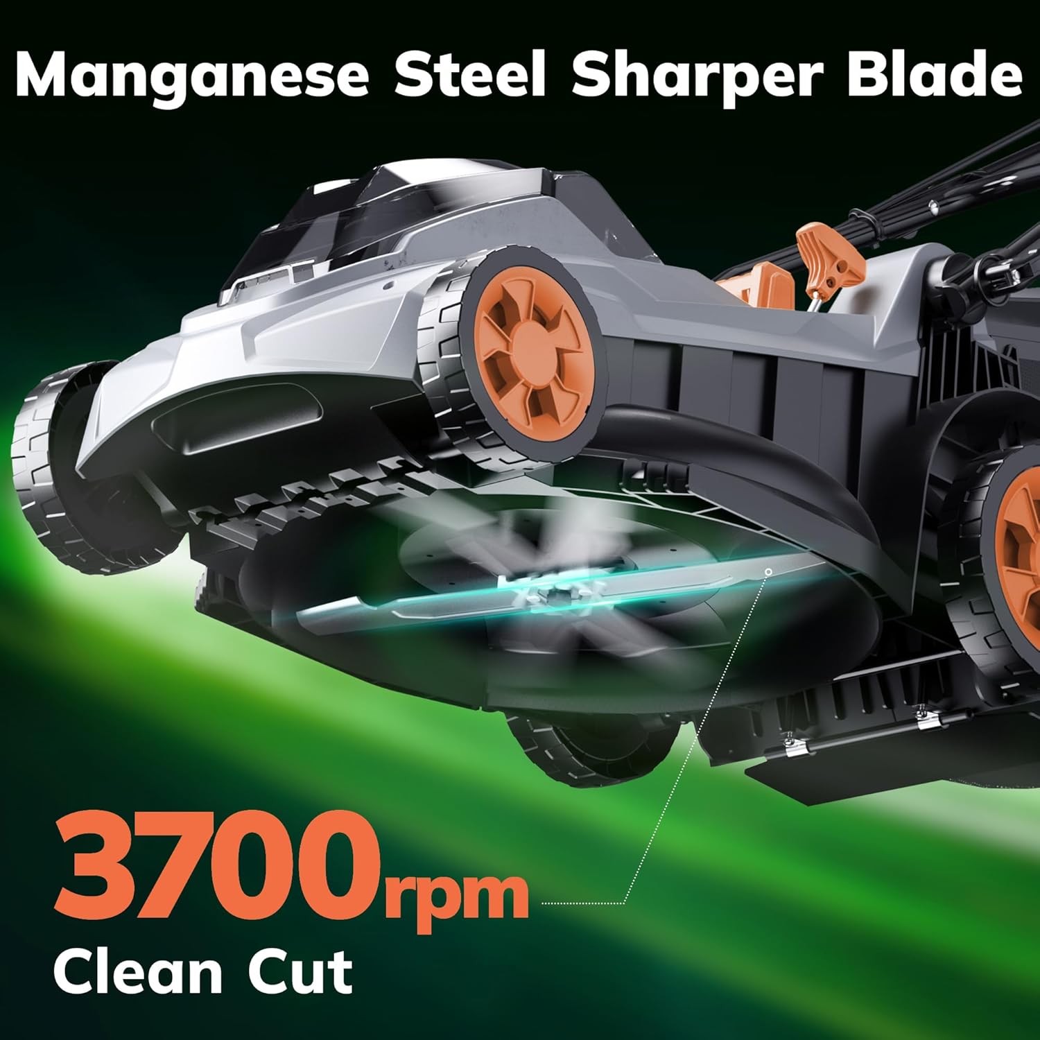 - 10.5 GAL BAG & 17-INCH CUTTING WIDE & : This battery powered lawn mower designed with a 10.5-gallon collection bag reduces emptying frequency and captures 70% more clippings per load - essential for overgrown lawns. And the 17-inch cutting width that expands coverage per pass, saving 2.5 hours monthly. The Industrial manganese steel blade operates at 3700 RPM with low noise; powered by an 18000 RPM brushless motor for dense grass conditions