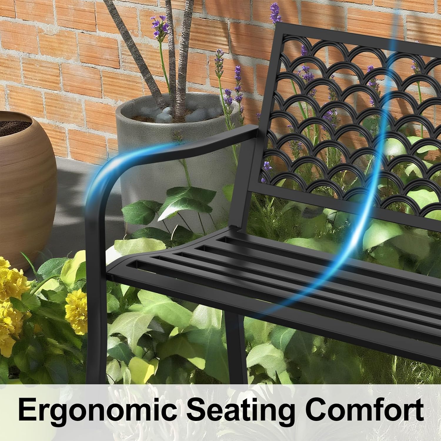 50" Heavy Duty Outdoor Bench, Wrought Iron Weatherproof Garden Bench Black Metal Patio Bench for Park Proch Yard 880lbs