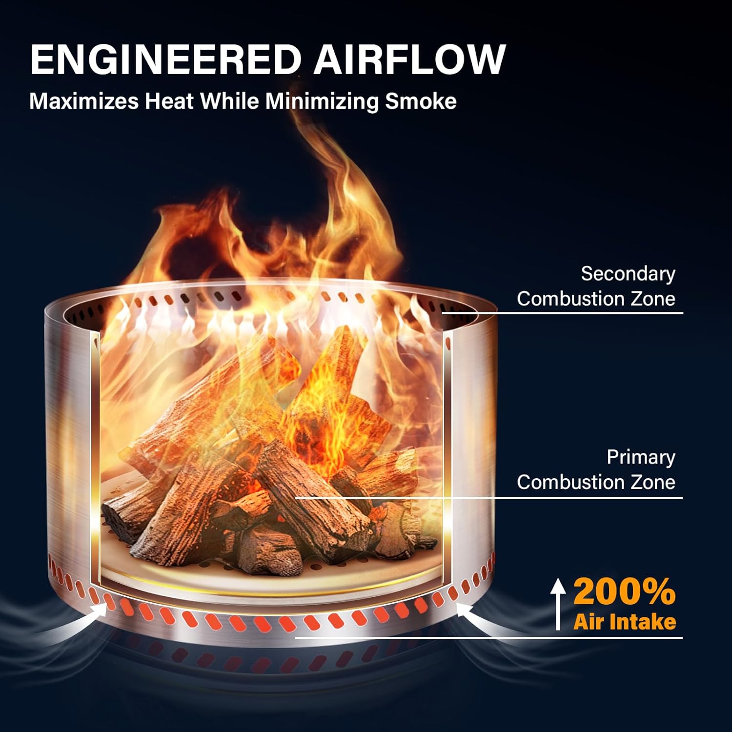 - Revolutionary Smokeless Technology: Advanced double-wall construction with 360° airflow system eliminates up to 90% smoke and odors, ensuring everyone enjoys comfortable, smoke-free gatherings around the fire