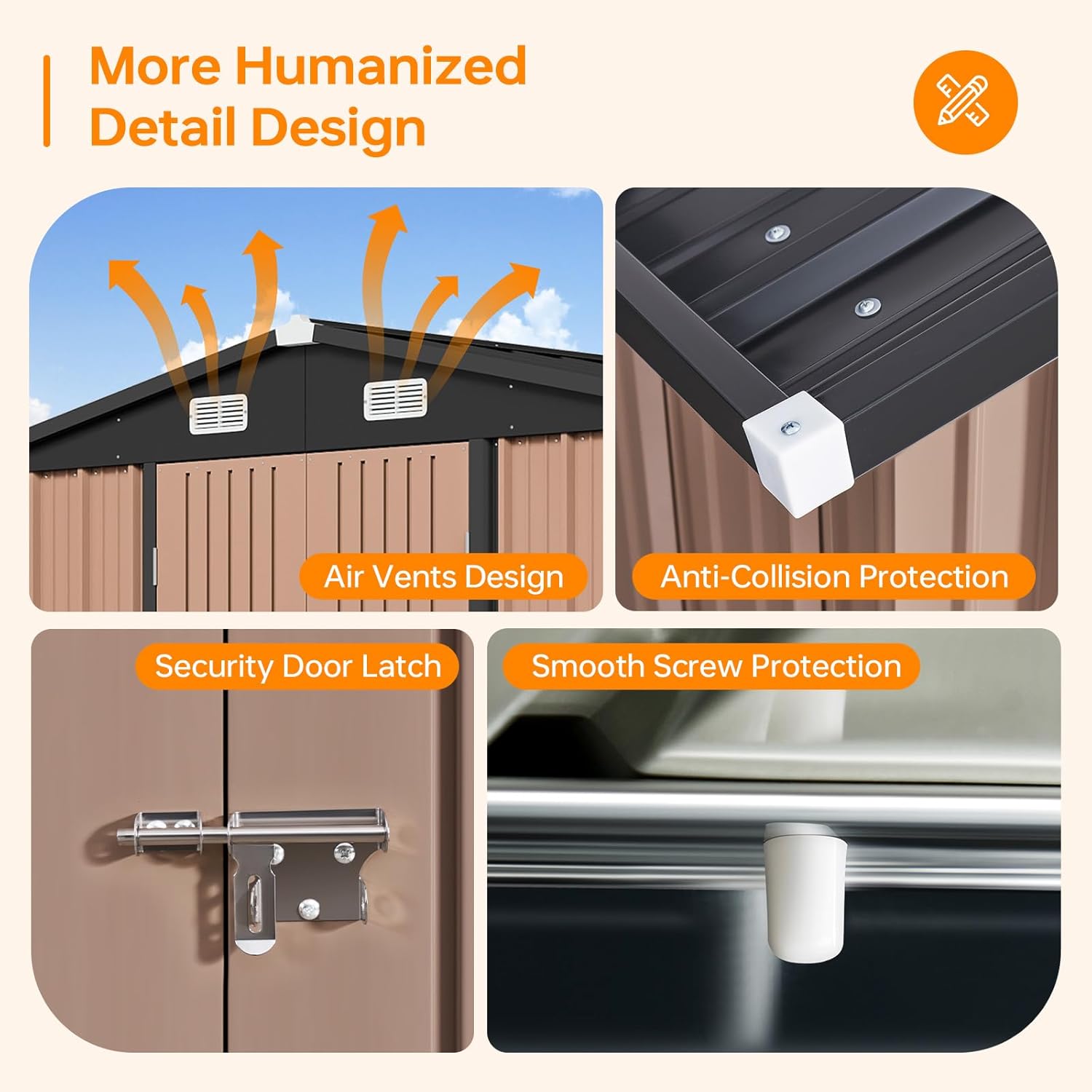 - Robust & Weatherproof Build: This outdoor storage shed is constructed from galvanized steel with waterproof engineering. It delivers enduring resilience against severe weather. Its reinforced metal roof and walls prevent deformation, while the sturdy frame withstands winds up to 30mph (Level 6) and snow loads of 6 inches.