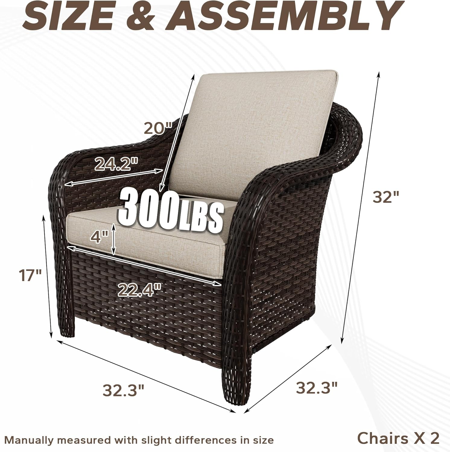 - Comfortable Set: The ergonomically designed chairs feature 4" thick seat cushions. Filled with 28D high-resilient foam, the soft and supportive seat cushion can prevent muscle soreness caused by prolonged sitting